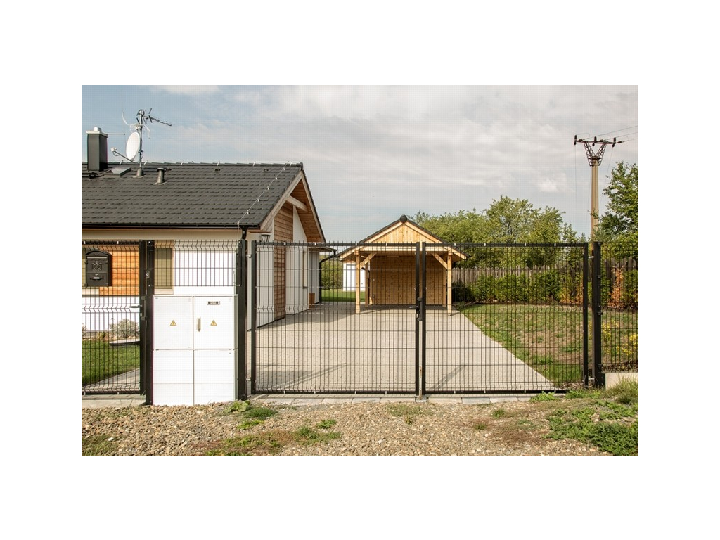 Zahradní brána pro vjezd techniky na pozemek vhodná především pro panelové ploty 3D (průmyslové panely 3D).