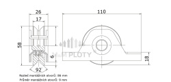 Rozměry naleznete v technickém nákresu. Pro tento typ kolečka je nutné použití kolejnice typu V. Správný typ kolejnice naleznete dole ve složce Související produkty.