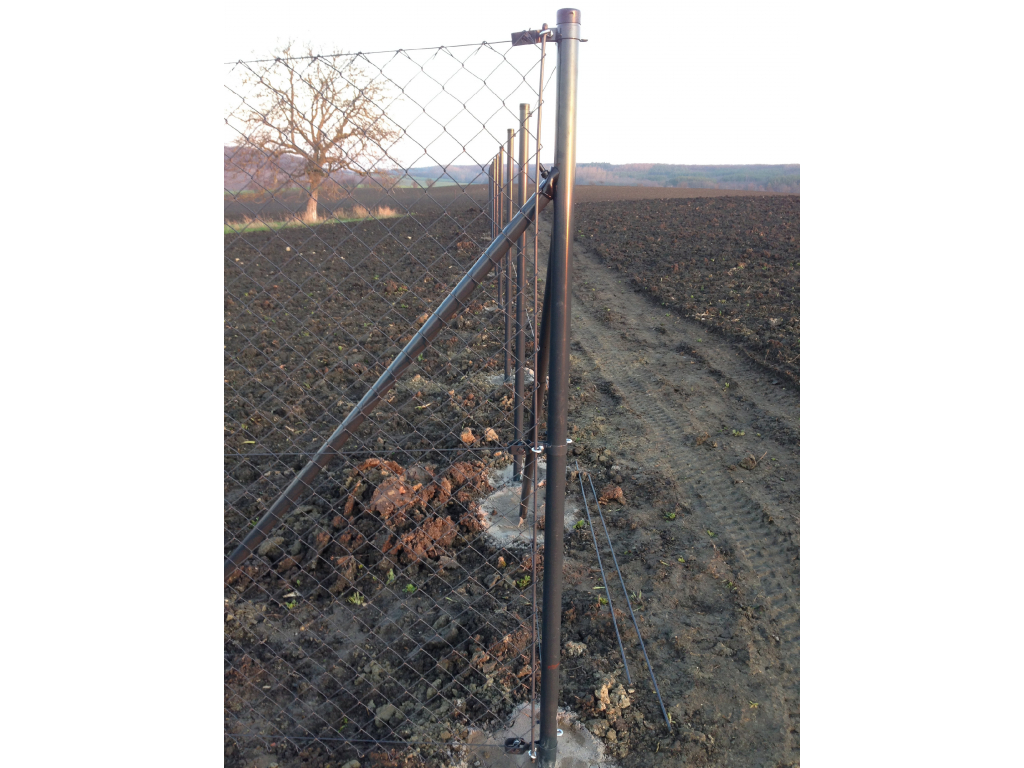 Napínací tyč slouží k přichycení pletiva na první a poslední sloupek. Tyč se provlékne oky pletiva a není nutné používat vázací drát k uchycení pletiva na sloupek.