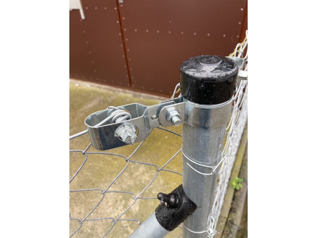 Objímka slouží k uchycení napínáku a napínacího drátu na sloupek.