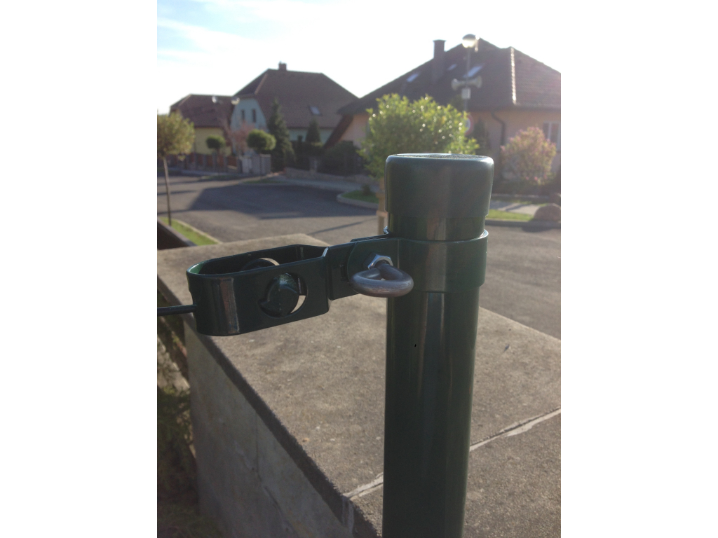 Objímka slouží k uchycení napínáku a napínacího drátu na sloupek.