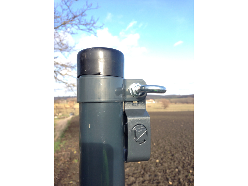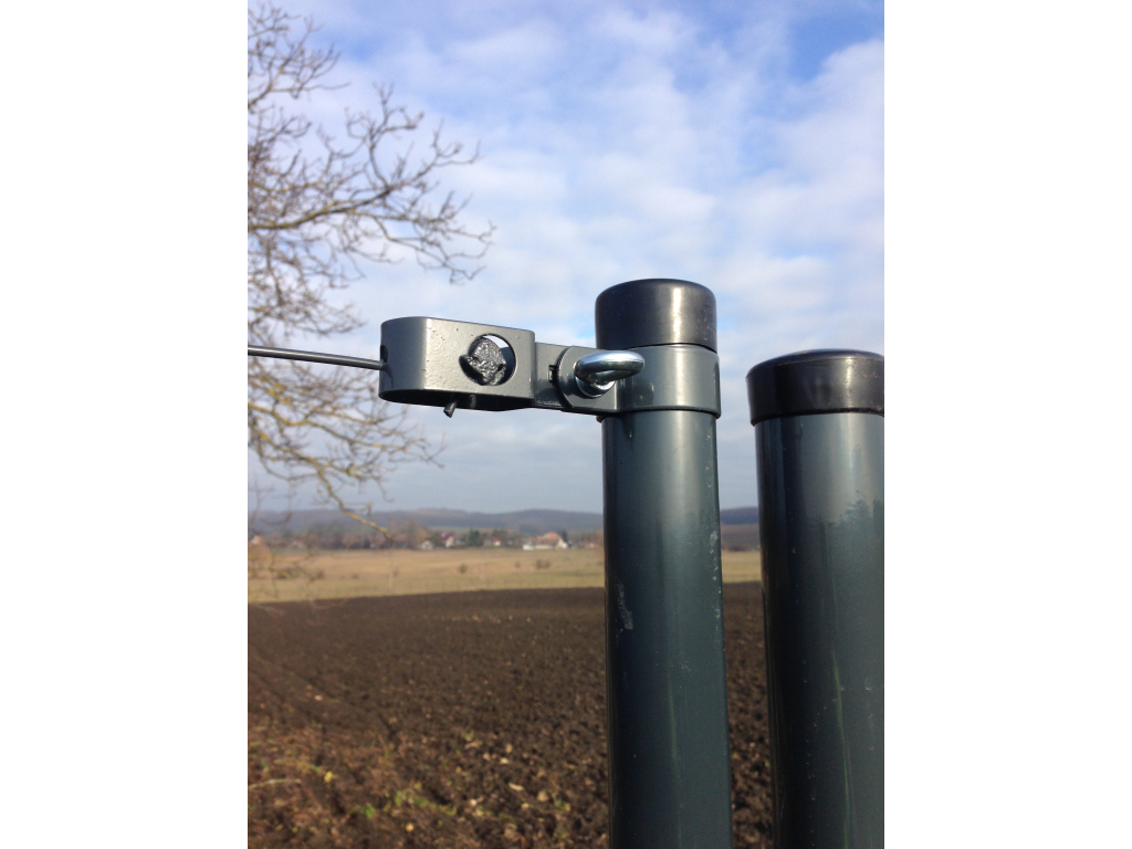Objímka slouží k uchycení napínáku a napínacího drátu na sloupek.
