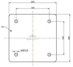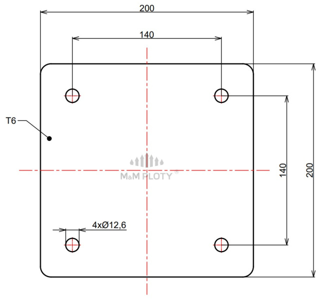 Kotevní plotna 200x200x6 mm, pro přivaření na sloupek