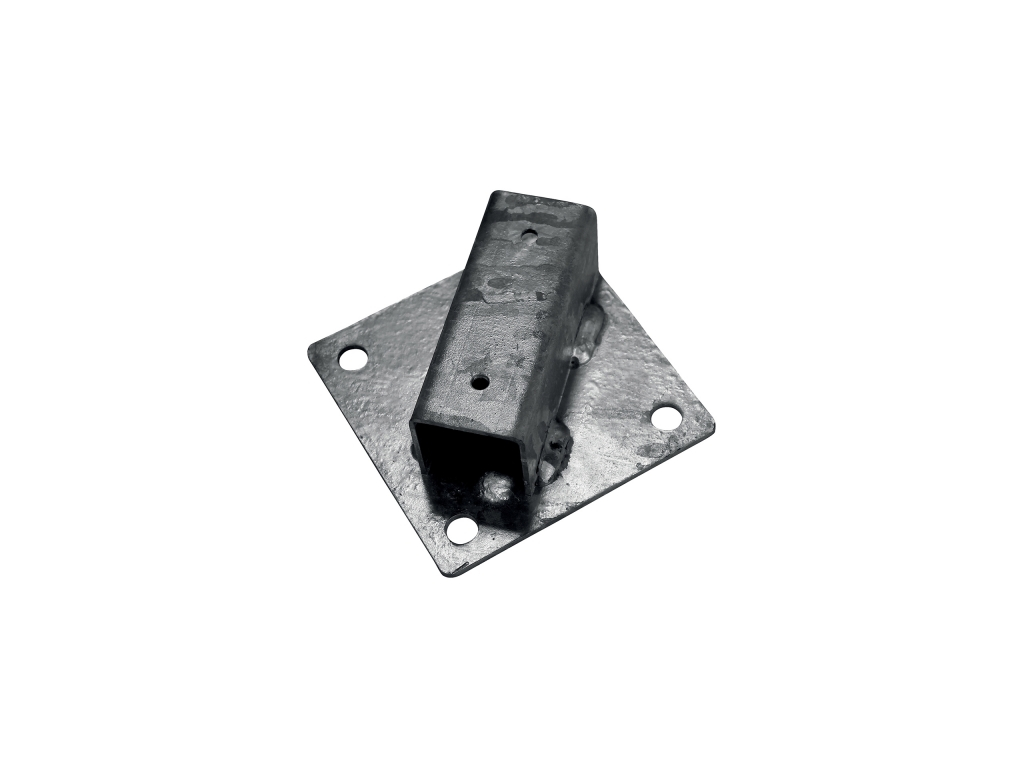 Patka slouží k uchycení plotového sloupku k betonovému povrchu. Patka obsahuje 4 otvory k pevnému uchycení s podkladem.