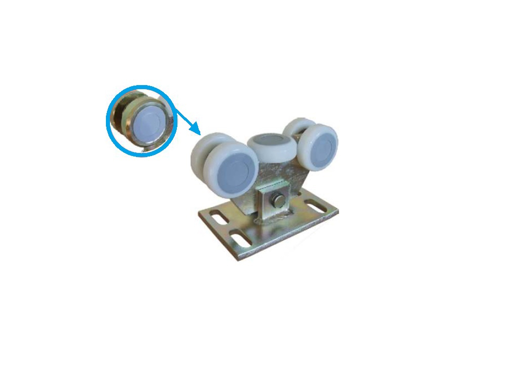 Pojezdový vozík se používá jako nosný prvek pro samonosné posuvné brány. Vozík je osazen nastavitelnou deskou s výkyvem s možností výškové regulace. Rolny ze silonu splňují požadavky na vysokou životnost a tichý chod brány, bez nutnosti mazání.