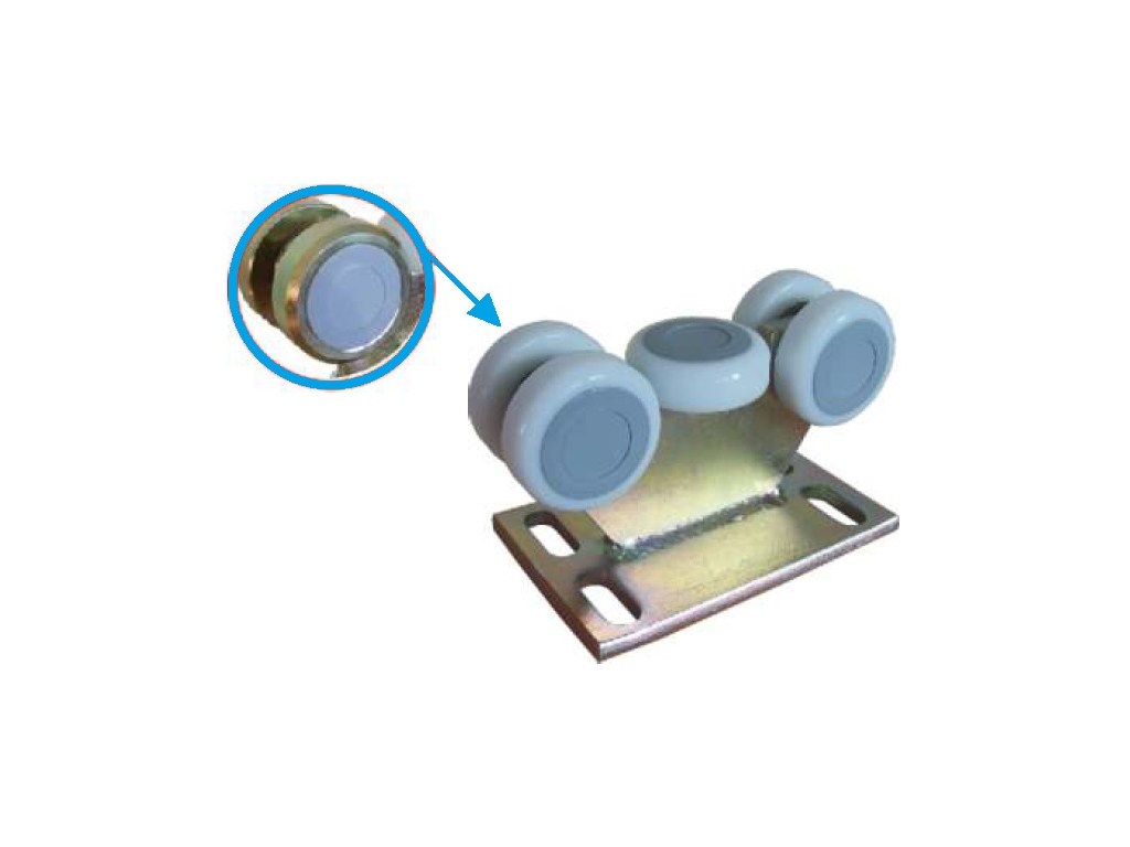 Pojezdový vozík se používá jako nosný prvek pro samonosné posuvné brány. Vozík je osazen pevnou deskou bez možnosti výškové regulace. Rolny ze silonu splňují požadavky na vysokou životnost a tichý chod brány, bez nutnosti mazání.