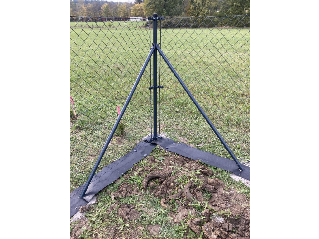 Vzpěra pro plotové sloupky zvyšuje stabilitu sloupků, přes které se napíná pletivo. Umísťuje se na začátek oplocení, konec oplocení a na rohové sloupky, tj. všude tam, kde jsou na sloupkách uchyceny napínací ráčny(napínáky). Je vhodná pro plotové sloupky s průměrem 48 mm a 38 mm. Je možné ji použít také pro brankové a bránové sloupky s průměrem 60 mm a 76 mm. Kvalitní povrchová úprava vzpěry zajišťuje její velmi dlouhou životnost, bez nákladů na údržbu.