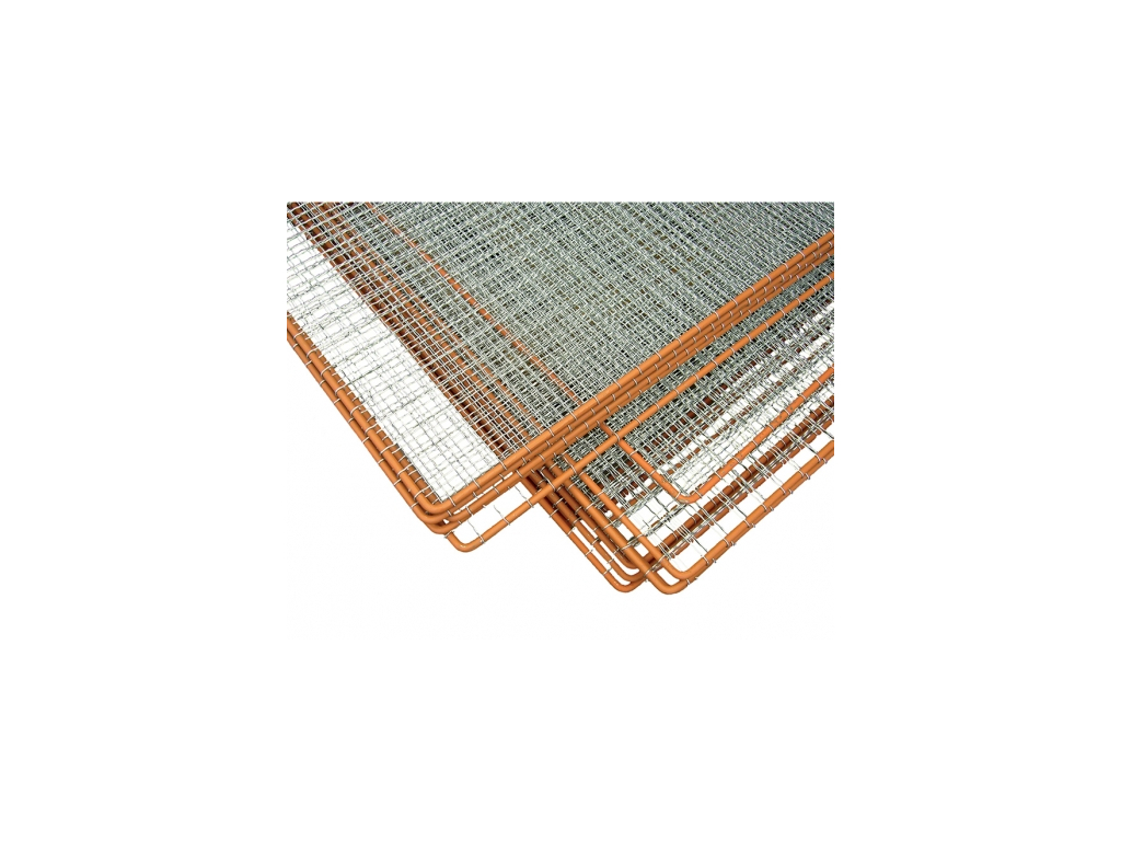 Pozinkované krepové dráty, které jsou vypleteny v kovovém rámu o průměru 12 mm.